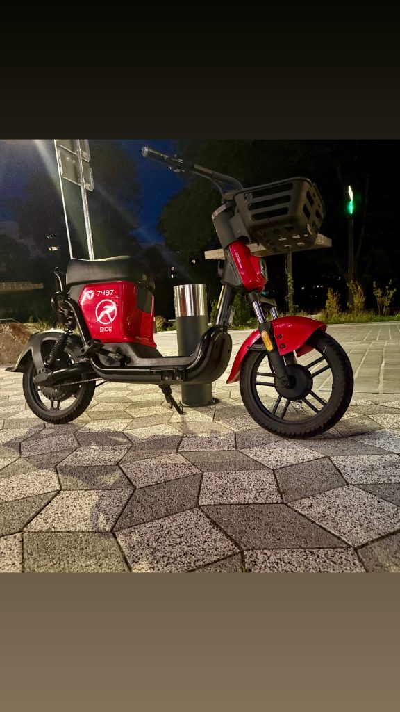 These awesome red e-bikes are everywhere in the city! I decided to try one one evening this week… and what a blast! They go so fat!! I had so much fun!