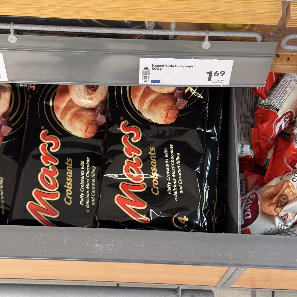 Mais en me promenant dans les allées de l’epicerie, j’ai remarqué que presque toutes les étiquettes sont en estonien, et aussi en russe ou en finnois. Les mots ne ressemblent en rien au français ou à l’anglais, alors heureusement que j’avais téléchargé Google Translate. La fonction Google Lens est incroyable: j’appuis sur l’icône de camera, je la pointe vers l’étiquette que je veux lire et ça traduit instantanément à l’écran.