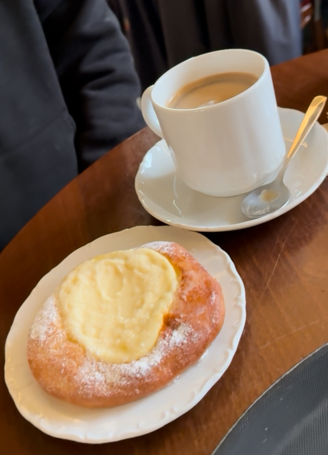 The second treat we tried was a curd cheese bun. It’s surprisingly light, not too sweet and goes perfectly with coffee. We’ll definitely eat some again soon!
