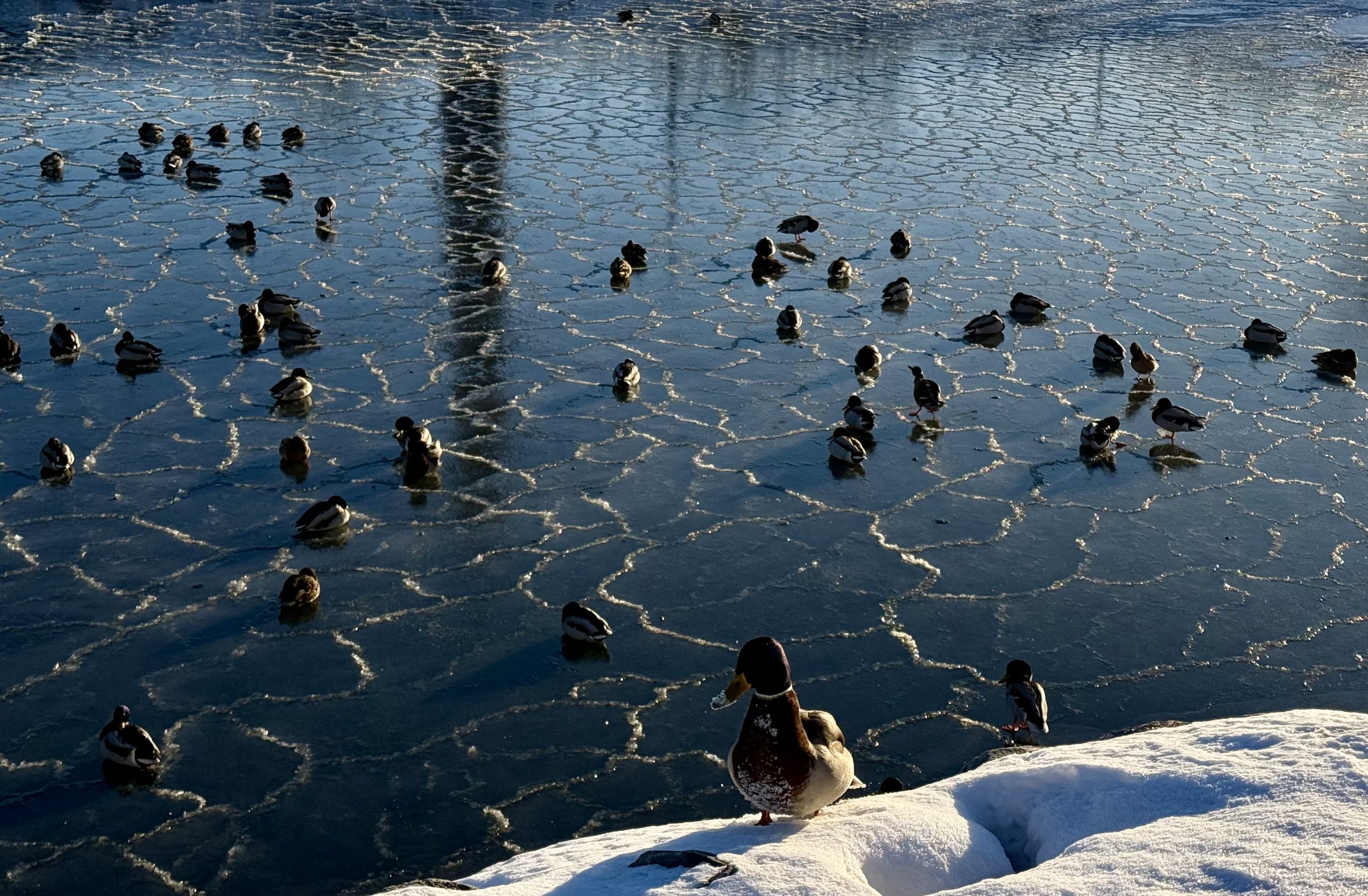 Ce cygne là a préféré de faire du patinage plus traditionnel pour se deplacer sur la glace ! 😉