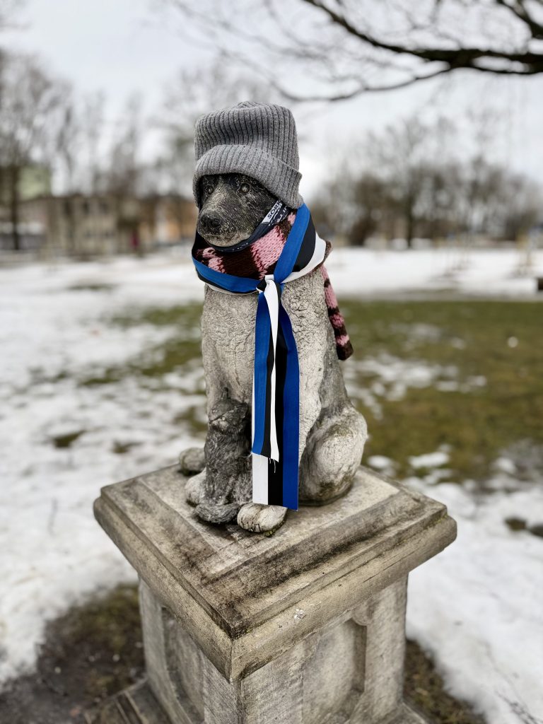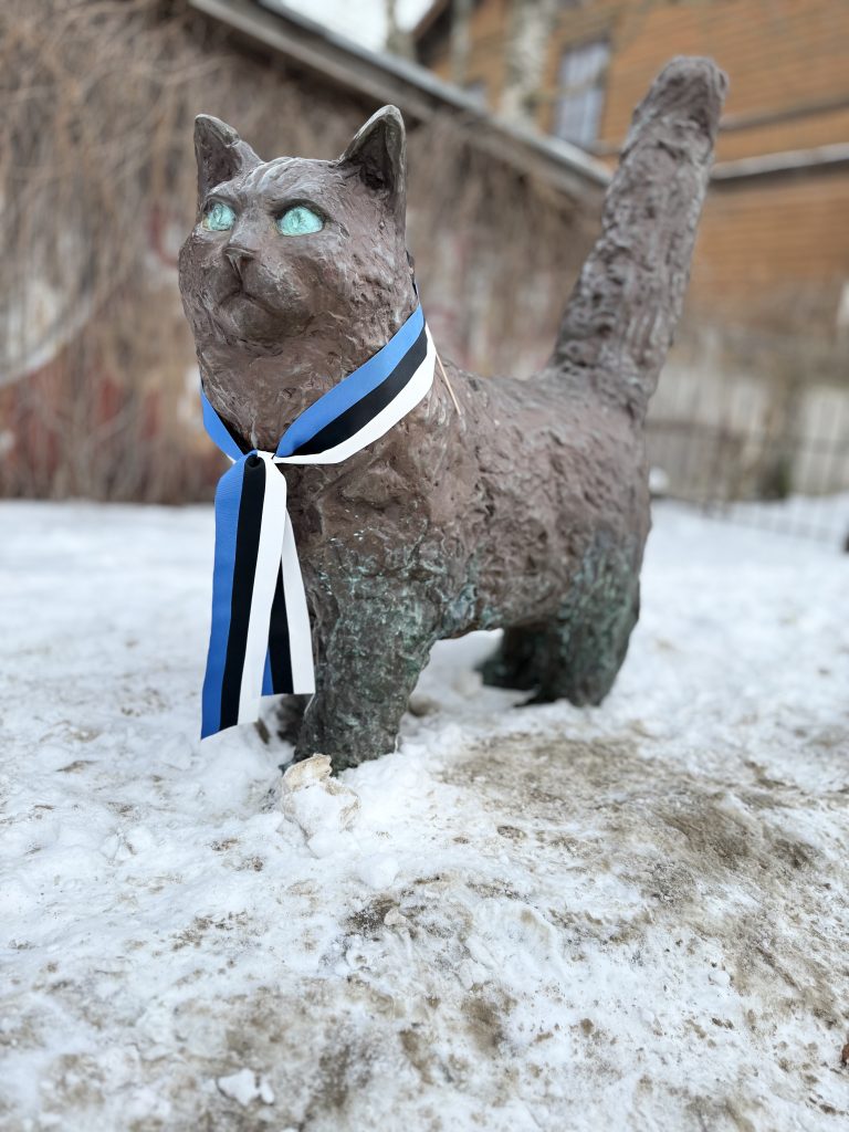 Ils ont même ajouté un petit ruban aux couleurs estoniennes autour d’August le Chat et de Žorik le chien errant pour célébrer la journée. Ce sont deux statues bien connues et adorées des habitants! 😊